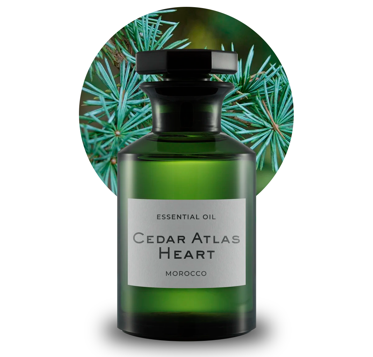 Dans une composition, les fractions de cèdre apportent clarté et verticalité : elles élèvent le cœur, affinent la silhouette et déposent un sillage à la fois transparent et tenace — comme un soleil glissant sur un bois parfaitement poli.